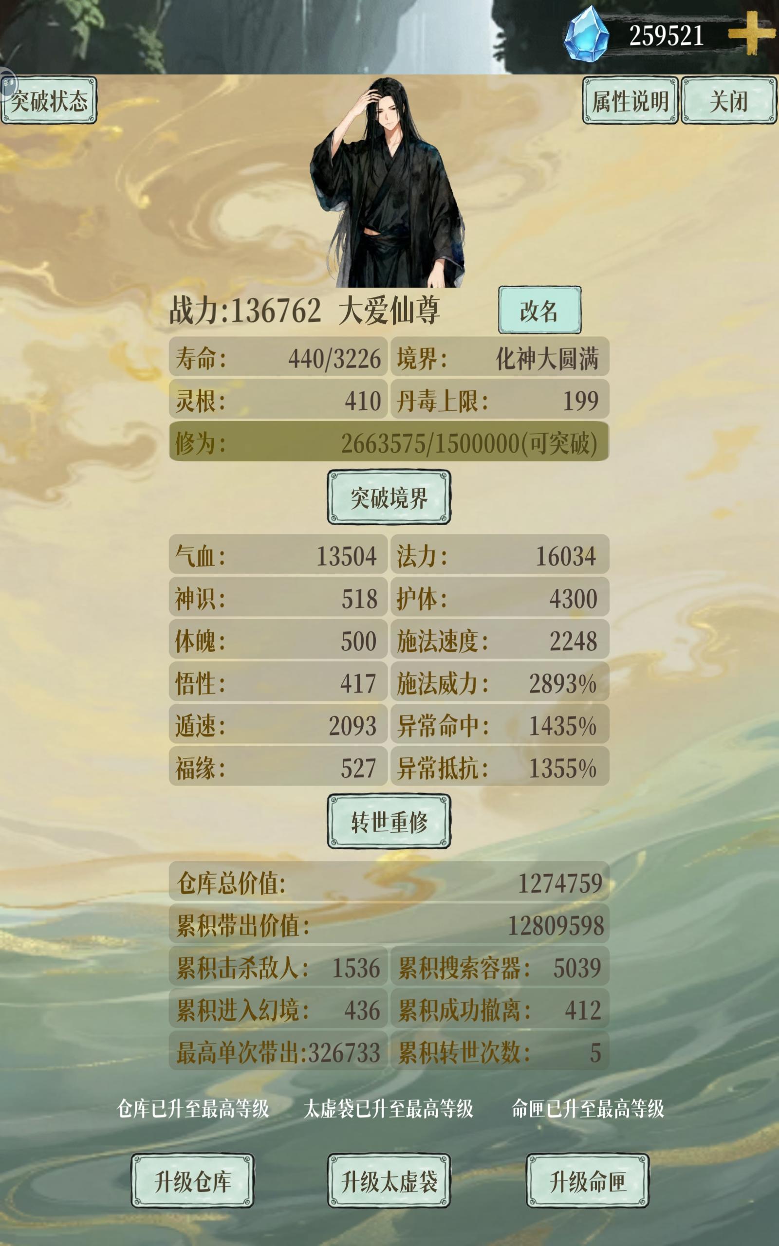 藏品拉满就开跑,境界升到化神商店会出化神材料,这么跑加全属性加福缘加血加蓝 ,给天命点,给商店刷新次数,商店刷新次数+灵石=天命点