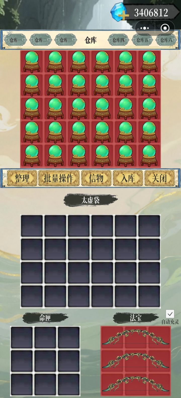 有概率将太虚袋得物品复制,不用辛苦找镜子复制了再次更新,新增兑换码:新年快乐可以获得福袋,福袋随机开出1-100天命,开了几个平均在50天命。所以福袋不要都用完了,留一个放在太虚袋撤退复制。落霞坊撤退流再次巨大加强