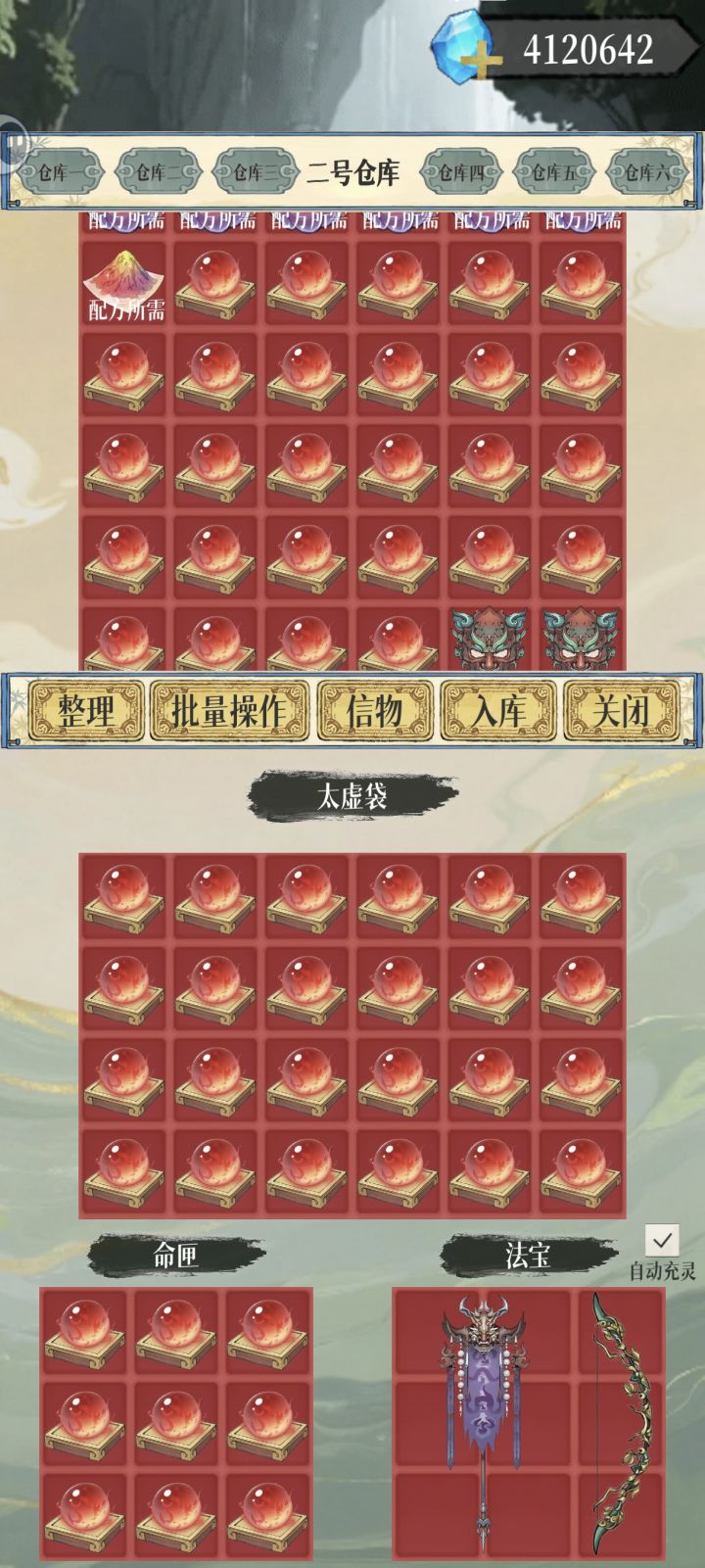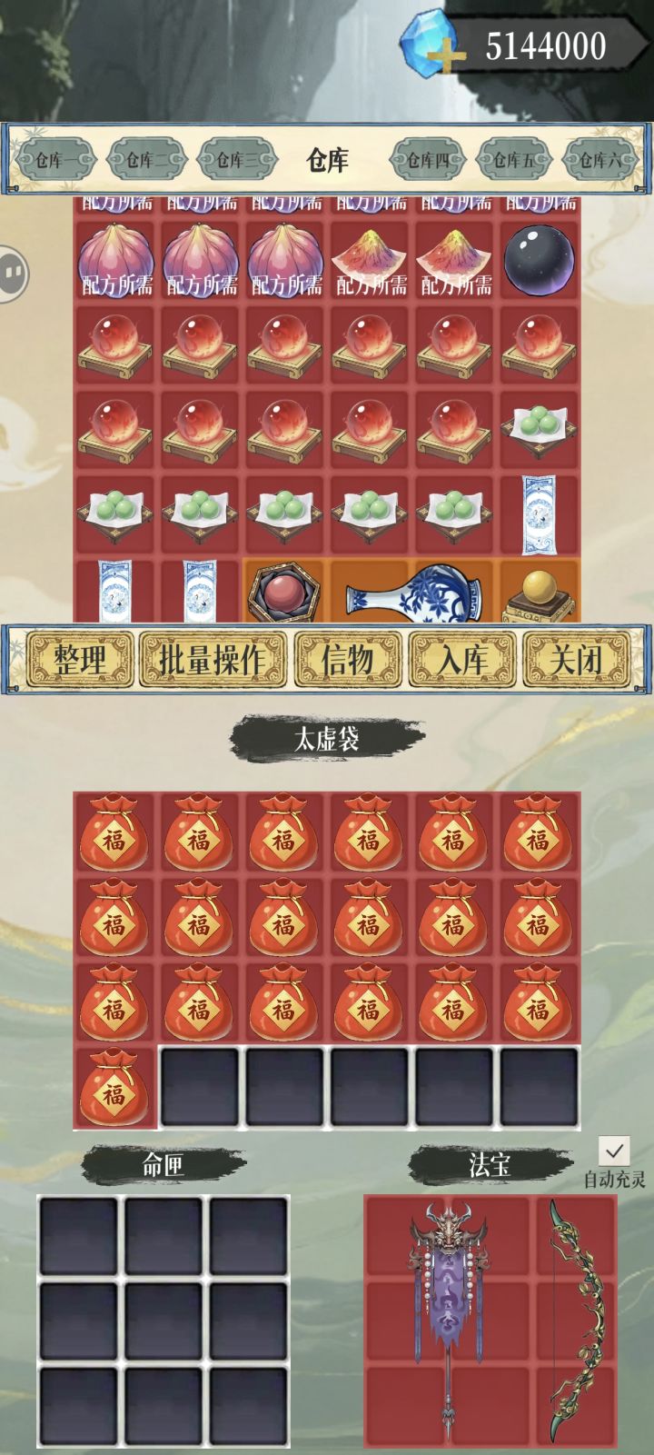 有概率将太虚袋得物品复制,不用辛苦找镜子复制了再次更新,新增兑换码:新年快乐可以获得福袋,福袋随机开出1-100天命,开了几个平均在50天命。所以福袋不要都用完了,留一个放在太虚袋撤退复制。落霞坊撤退流再次巨大加强