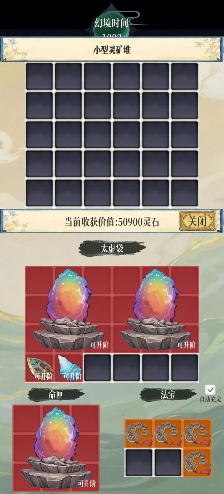 刷刷新技能需谨慎,耗费天命值很多。幻物分真不是很实用,但是可以在练气图刷补天石很快。灵囊藏物必选。灵寻多获必选。幻物归藏必选。