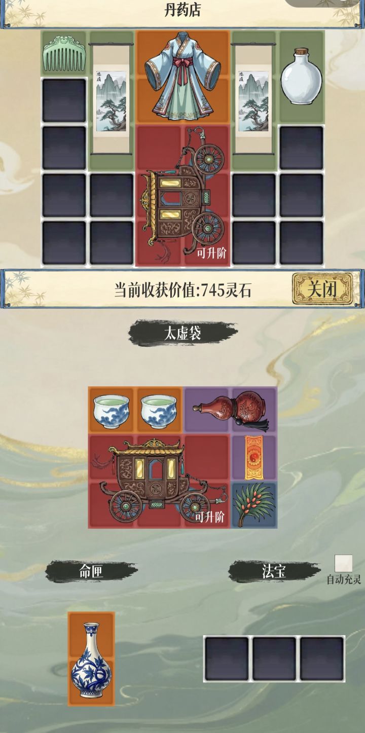 有概率将太虚袋得物品复制,不用辛苦找镜子复制了再次更新,新增兑换码:新年快乐可以获得福袋,福袋随机开出1-100天命,开了几个平均在50天命。所以福袋不要都用完了,留一个放在太虚袋撤退复制。落霞坊撤退流再次巨大加强