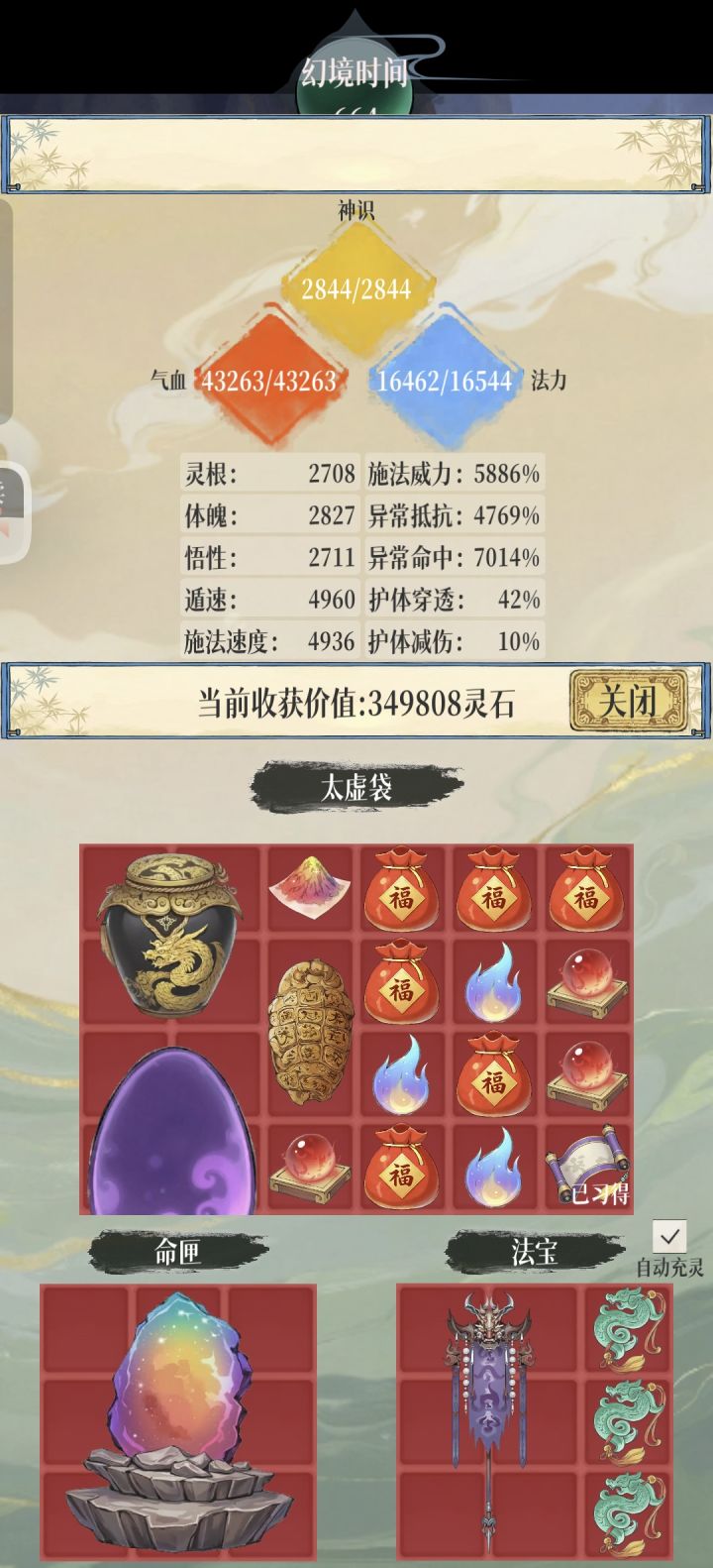 刷刷新技能需谨慎,耗费天命值很多。幻物分真不是很实用,但是可以在练气图刷补天石很快。灵囊藏物必选。灵寻多获必选。幻物归藏必选。