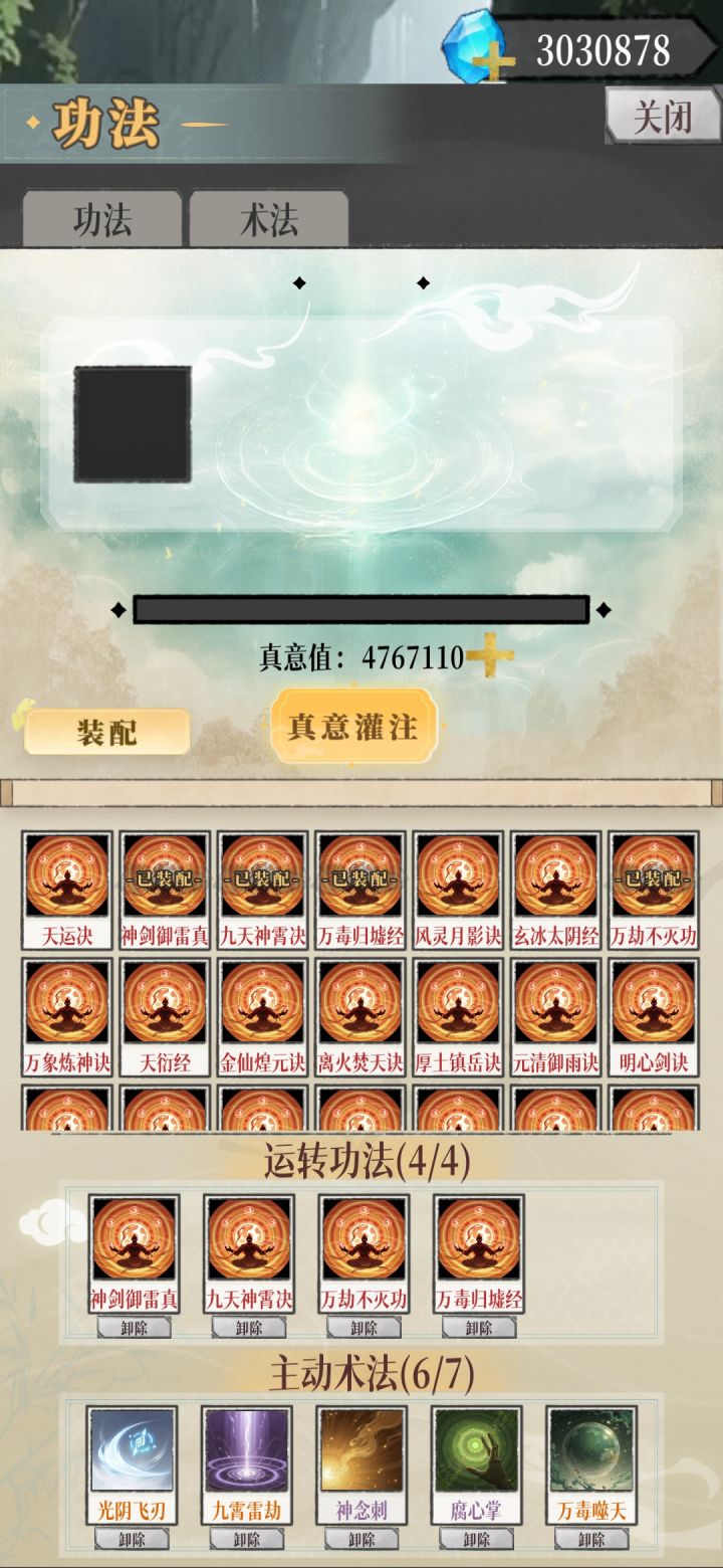 功法、法宝搭配和获取途径,①无底渊前两层(第三层免疫禁和毒,另说)【运转功法】:神剑御雷➕九天神霄➕万劫不灭➕万毒归墟(功法在化神拍卖会购买)【主动术法】:光阴飞刃➕九霄雷劫➕神念刺➕腐心掌➕三千雷动☆☆☆【法宝】☆☆☆:芭蕉扇➕洛神令➕青玉手镯,无敌渊的boss机制就是叠加10层buff就秒杀,而芭蕉扇减对手buff完美克制,洛神令和手镯给扇子加速,从头到尾boss都叠不起来,可以无伤过