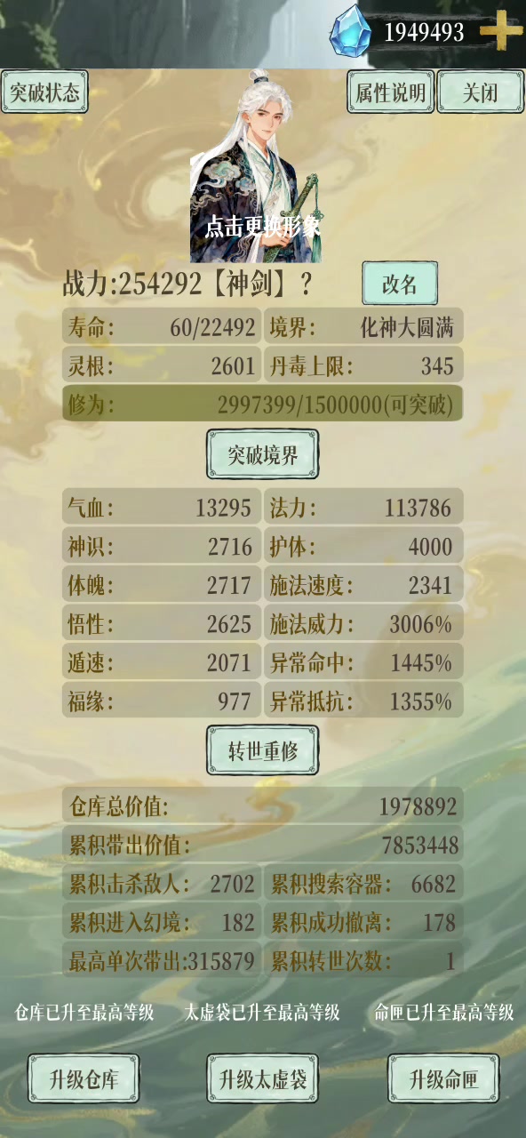 看没人玩剑修就发一下,主要靠大同风清机制,然后雷影剑配合功法疯狂推条boss#幻境修仙