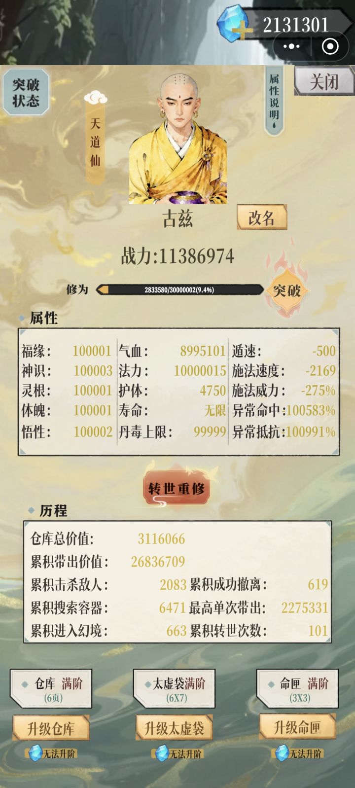 之前有个一命无暇元婴的存档,回来后发现更新了不少,于是直接推到一命成仙