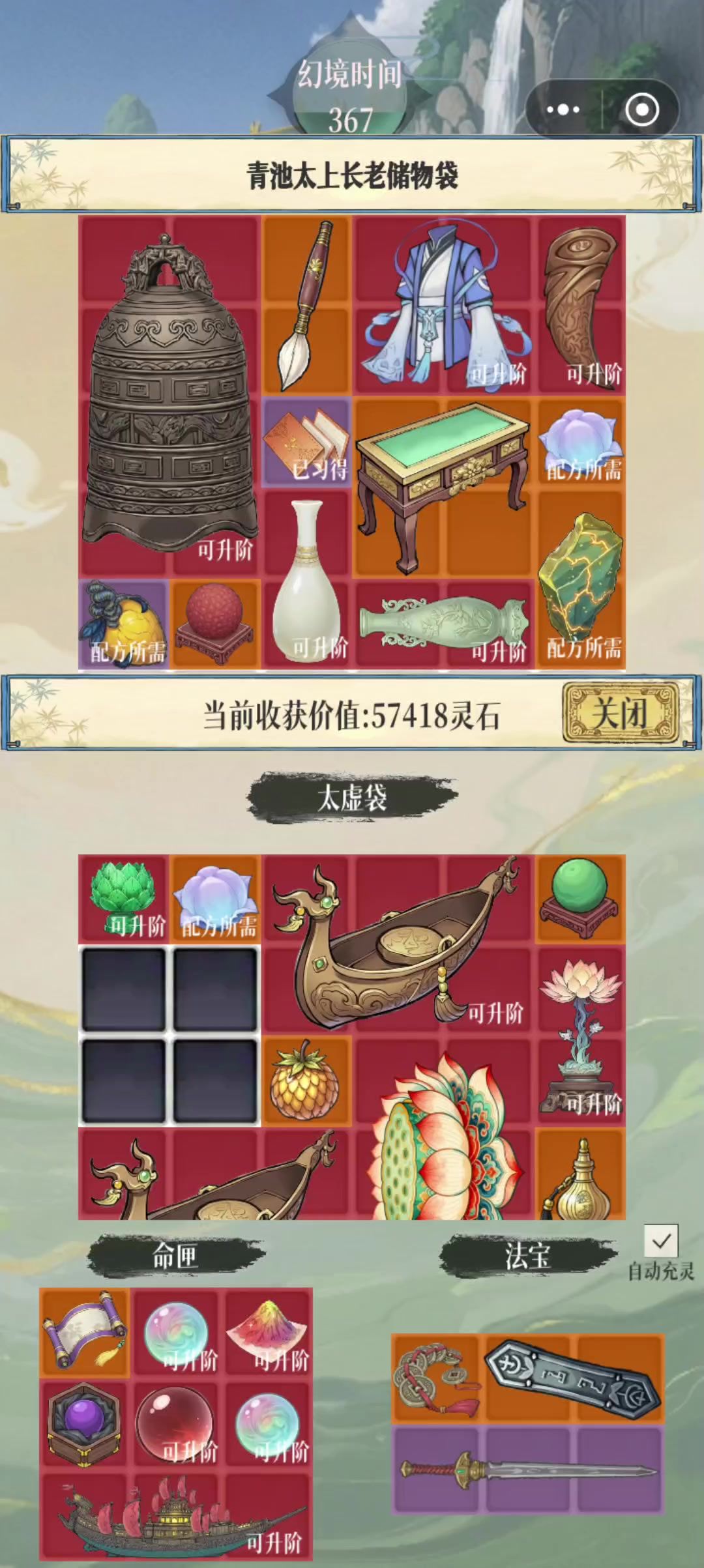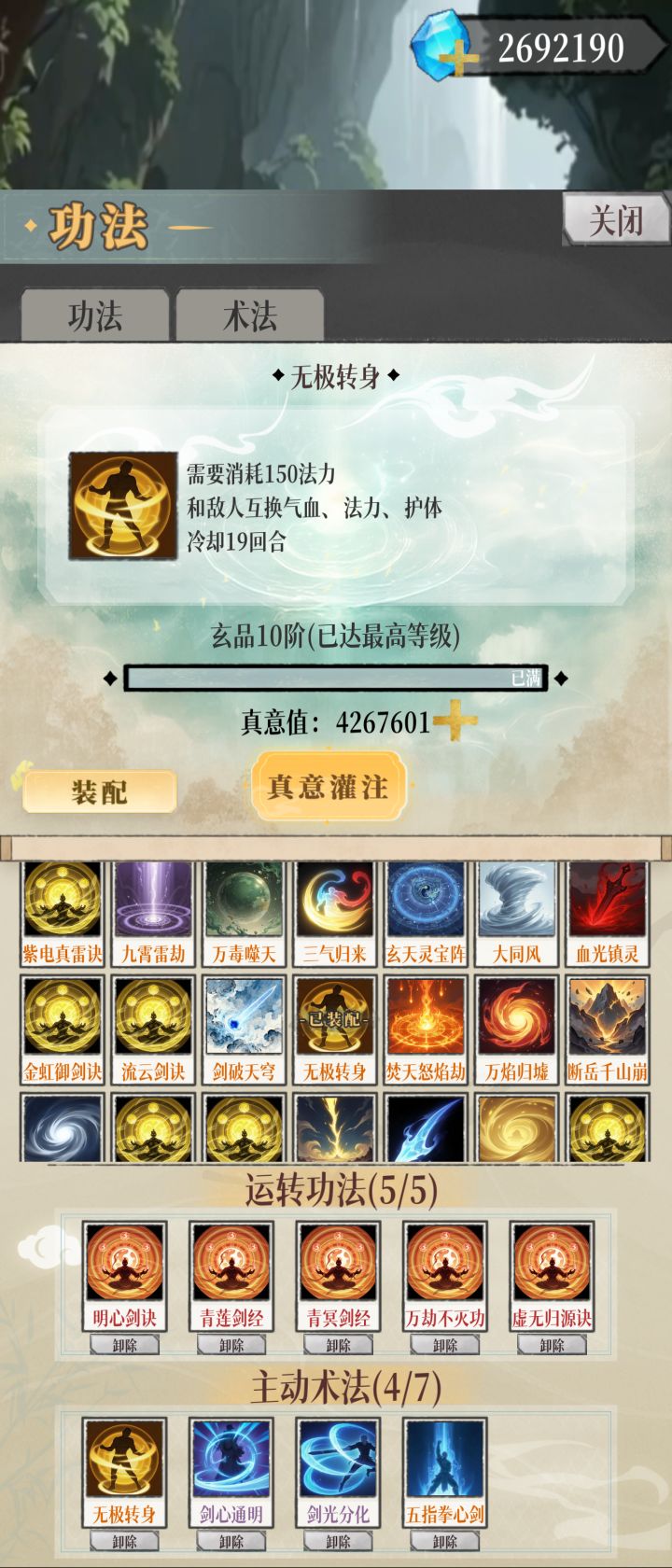 先三气换血,在无极接神谋,或者直接光阴接神谋,然后有剑心和剑光都可以用,最后说一下这个必须搭配诛仙剑阵这个法宝,因为前面几个是削弱血量后面是给快速叠剑气触发两百层的剑阵伤害