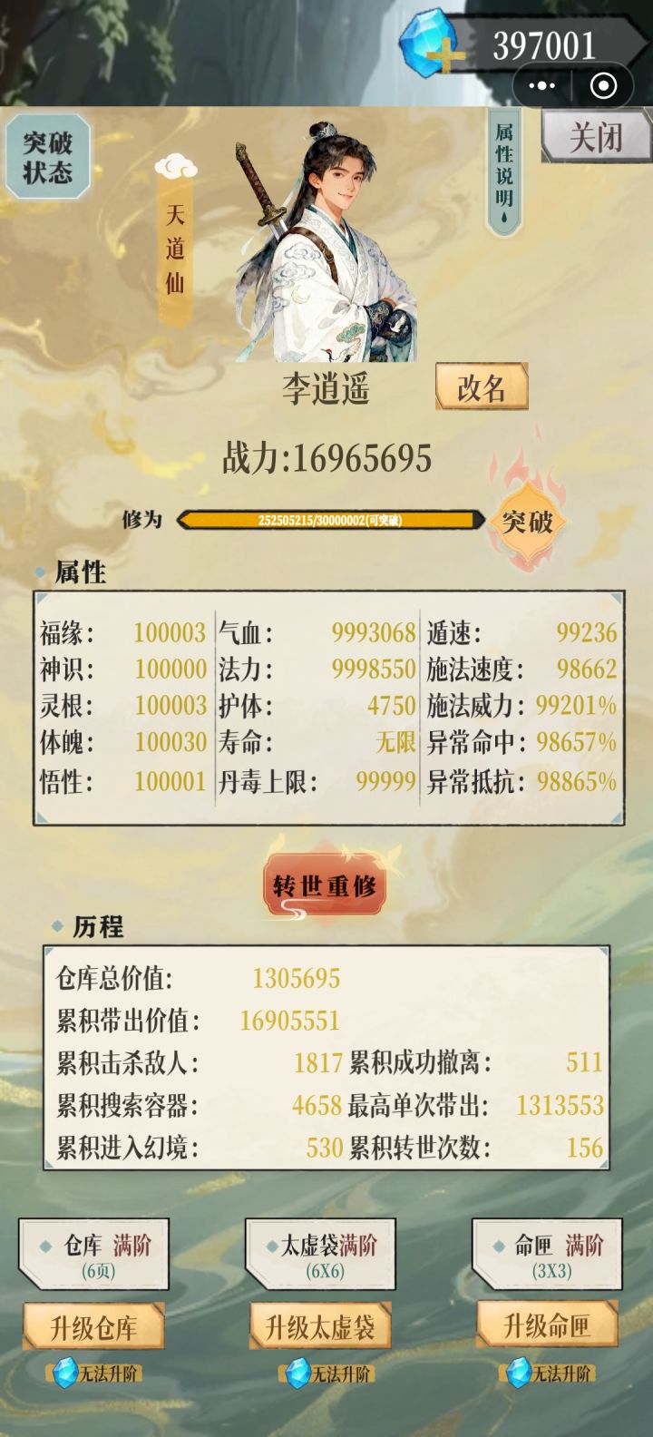 幻境修仙666更多兑换码加群1033478467获取逆天改命乃永久消耗天命点之举,新手慎点如遇其他BUG请加群反馈给群主,基本马上就会修复