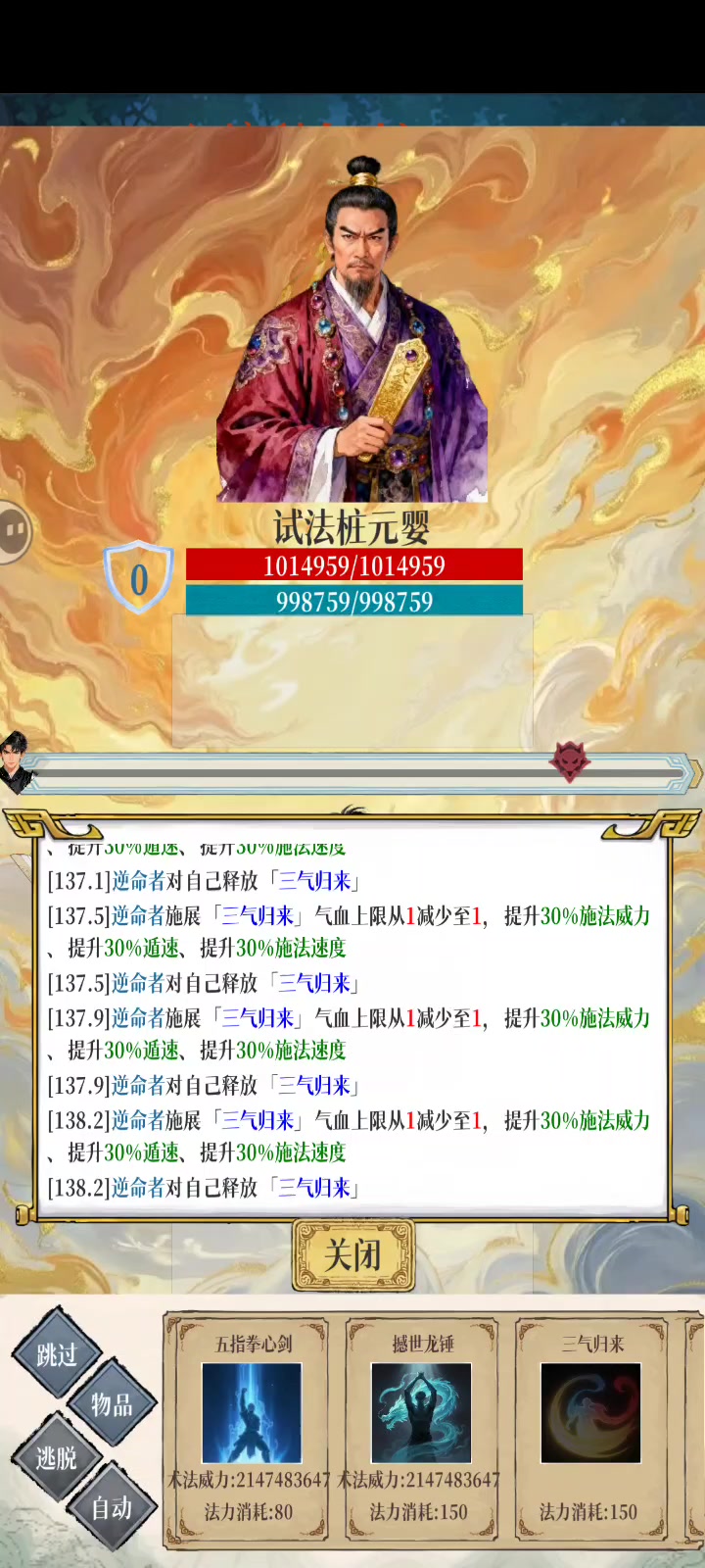 全网最最最最最最最轮椅,低战低4维打Boss 打武庸前提条件:不带功法时,悟性加施法速度总和达到1250左右,其他的全都不用管 打白凝冰前提条件:体魄达到180(不然容易被她的法宝打死),悟性加施法速度总和达到1250左右,其他的全都不用管#幻境修仙 功法:风灵月影诀,神剑御雷真诀,九天神霄诀,再来随便一本加施法速度的功法 术法:三气归来,神念刺,金戈剑,九霄雷劫,腐心掌 法宝:神峻图,5个青