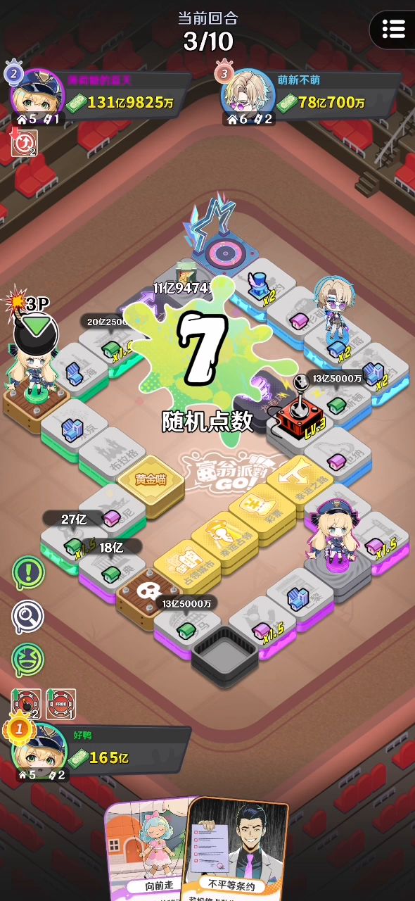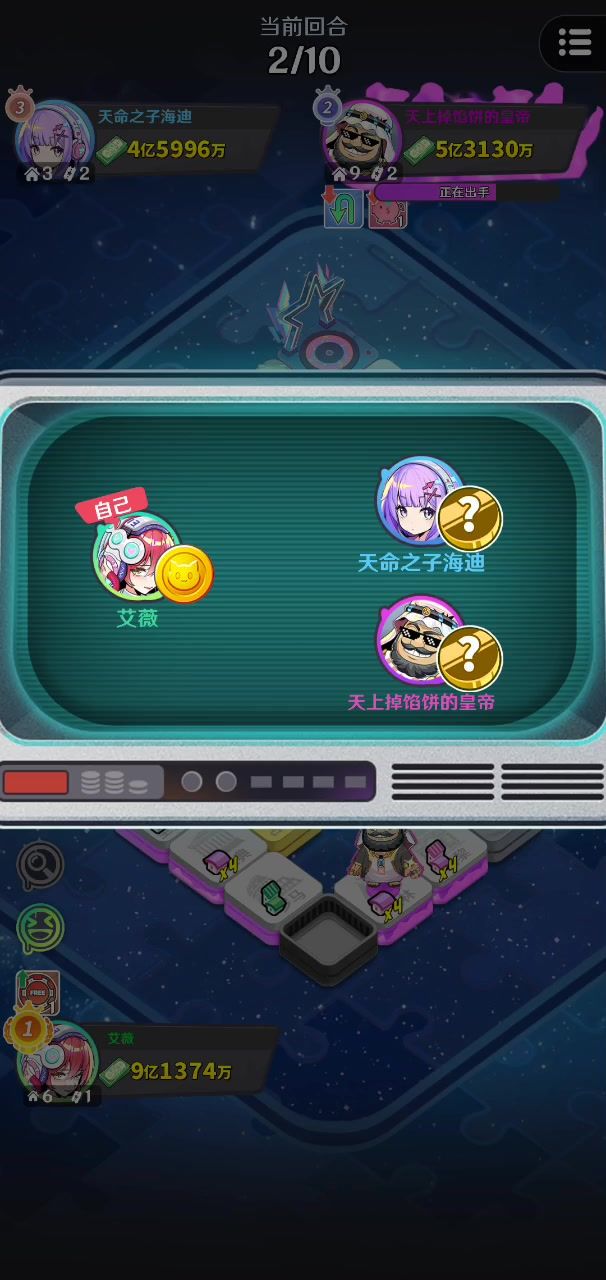 这里视频放不上去。在星空的地图里,新回合有人来把我踢出格子的时候我进入了猜金色银色硬币的格子,同时我又新回合往前了一步。我在猜硬币的前方一格里触发了猜硬币,好像三个人都卡住了#bug反馈