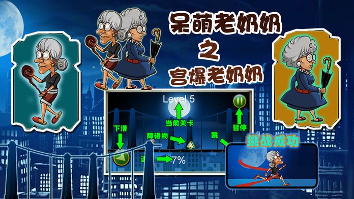 这是一款超级有趣的跑酷游戏,老奶奶这样呆萌好吗?哈哈!小伙伴们赶快跟随老奶奶的步伐跑起来吧!