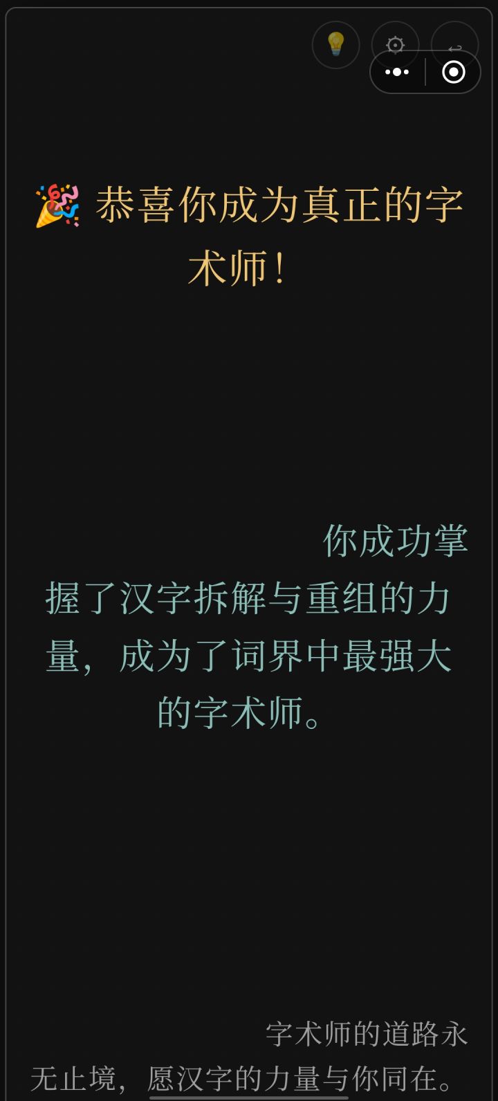 我们是一个新人团队,在尝试制作一个以“拆字并重新组合”为主要玩法的游戏,目前这个《词界》就是玩法的初步展示。但是我们遇到的问题是,巧妙的谜题非常难想出来。比如说一个句子“你被困在了【阴暗】的牢房中,看不清四周”,此时你点击【阴暗】就可以获得四个部件:耳刀旁,月,日,音。然后拖动【日】与【月】字相碰,就会获得【明】字。新获得的这个【明】字就可以去把原来被拆解掉的【暗】字替换掉,从而改变句意