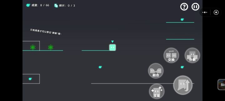 初见我原地分解结果小红直接掉出了世界,我还寻思半天为什么点什么都不能动,终于重新开始-往前走两步再分解才好,也许再加点提示「往前走一点」「太靠边分解会掉下去喔」之类会好很多?
