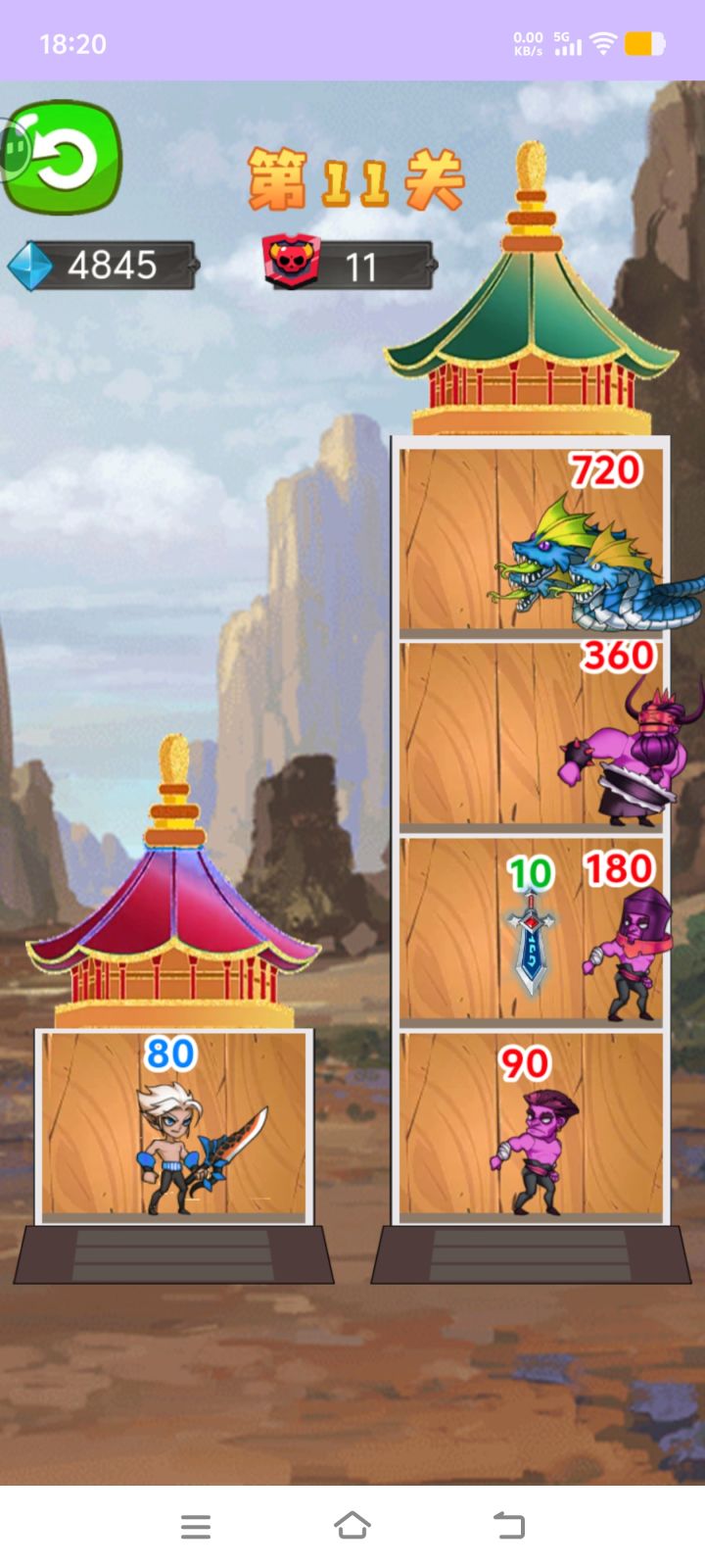 玩法就是那种广告爬塔吃数字游戏,玩了11关也没换下场景,总体还算是简陋,无聊时候是值得推荐玩一下的。