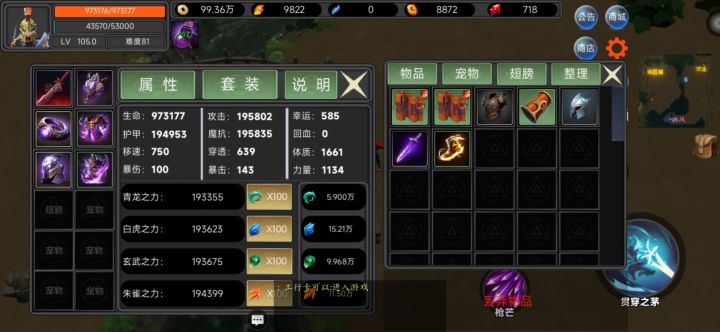 看数值 裸装,只带装备,装备宠物齐全