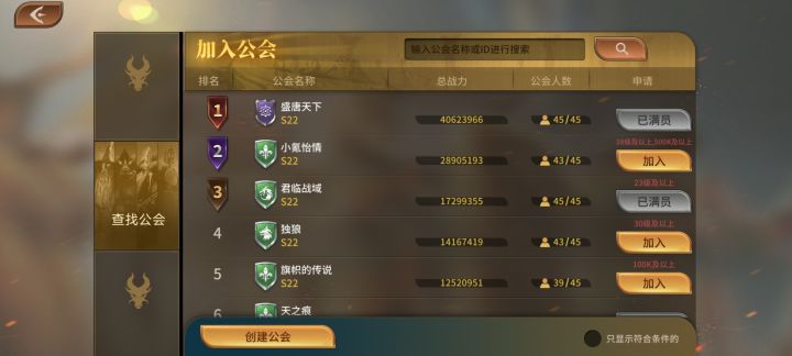 我好像卡bug了,申请了一个公会,会长那边也批了图2,但是我这边还是显示没加入图1,3。