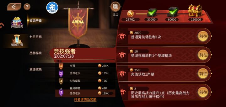 1.虽然是个单机游戏,但还是提醒一下进新区朋友!注意这个争锋活动,三天三轮,左图为时间和任务,右图为达标奖励和任务币数量,每天按战力相近玩家匹配,类似超能勇士三星竞标赛!我们进去抽完初始50抽拿到想要开荒英雄,停手,所有资源全部攒下,其中包括,抽卡球,镐头,竞技场券,阵营球,钻石,魔兽球,升级,经验!!第一天开始,拉一个到100级,其他相差不到10级,任务开启后没升一点战力,给10个币,所以资源都