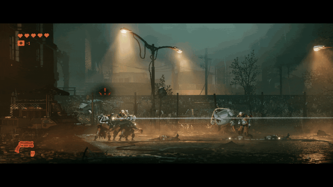 光影效果一流的横板动作游戏,场景关卡经过强大的美术优化,将经典的类银关卡做成废弃城市环境的样子。本作最大的惊喜,就是“白蚁帮”超男主发射车载狙击炮弹时,动画效果让子弹打破2D桎梏,张力拉满。