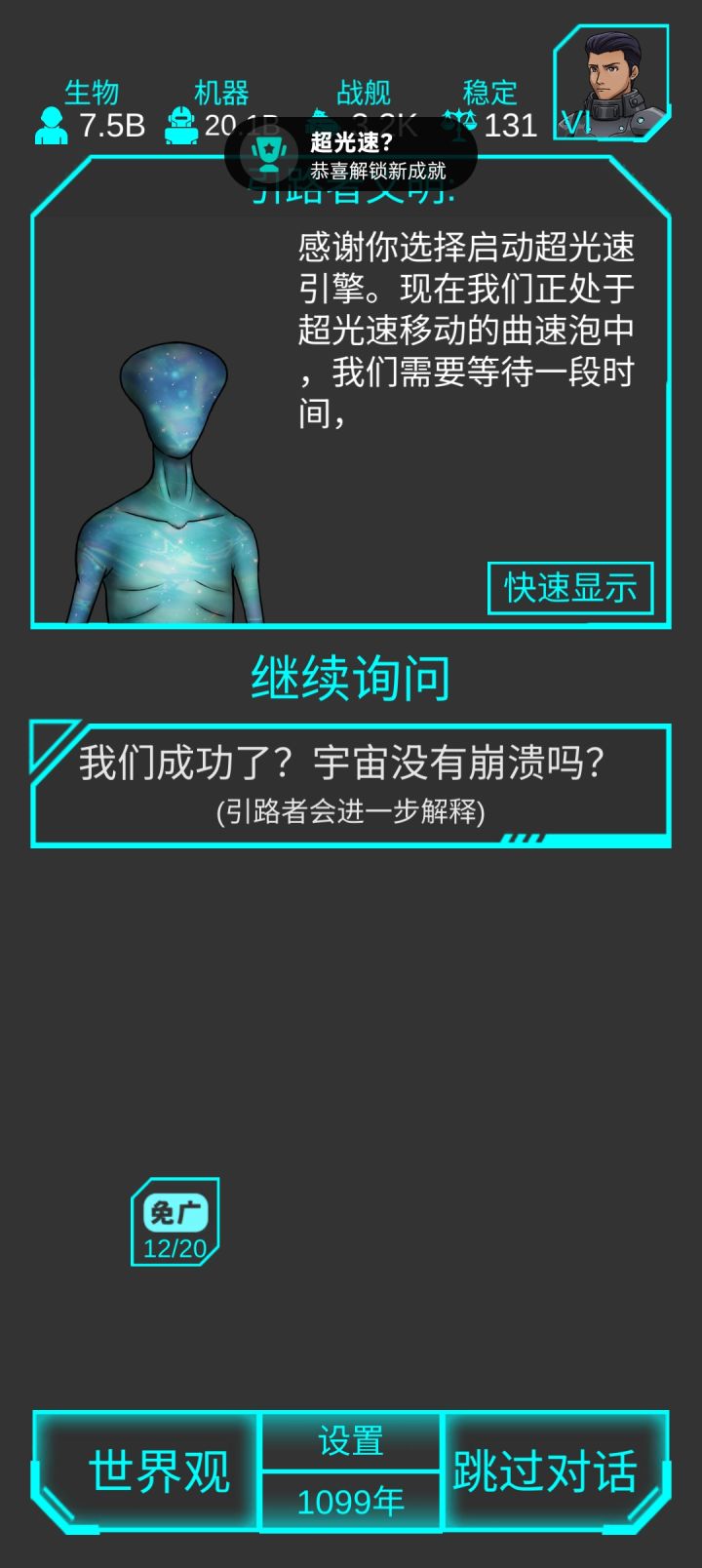 我在我在翻看成就的时候发现了还有另一个超光速,所以说有人知道这一个隐藏怎么达成吗?