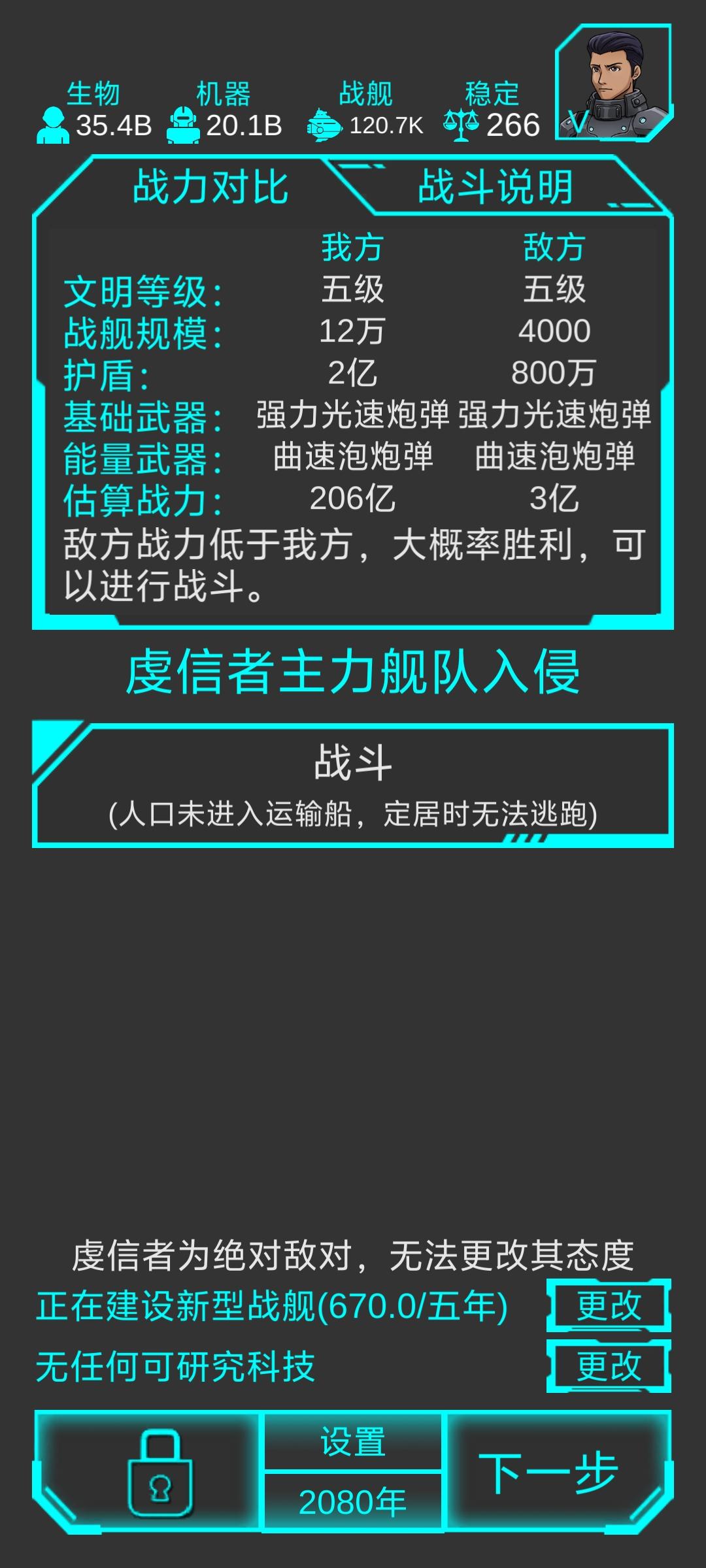 个人想法是利用灭绝者低移速来有足够的时间科技爆炸,前期反正因为有重核聚变减移速的特性基本跑不过对面,干脆原地爆科技。需要刷开局,要附近出个非星际文明的宜居星球。因为有地下城提供的80亿人,选项人口选最少就行。然后遗迹,事件啥的全怼科研再说,够在750年左右点出80%光速了,能明显跑过对面了。后期就简单了。