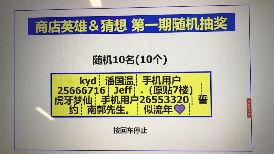 亲爱的店主们~商店英雄&猜想 第一期已圆满结束,参与活动店主们越来越多,使我们非常开心和感恩,后续我们将举行更多有意思的活动,敬请留意~原贴:商店英雄&猜想 第一期https://www.taptap.com/topic/3374168论坛举办的活动仅针对国际服用户。公布下正确答案:B 骑士盾牌电脑随机抽取30名获奖名单:领奖方式:请以上30名获奖Tap用户添加官方微信号:Shop