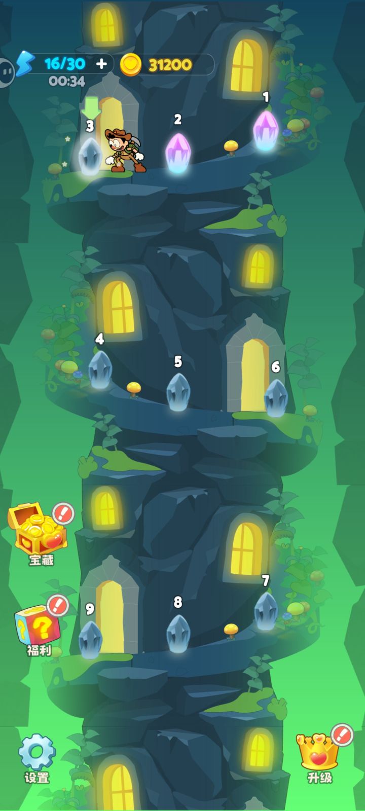 2D卡通画风,界面结构非常简单,UI品质一般,有点像个人作品。角色造型似乎是某个迪士尼动漫角色,画风十分接近,有简单的跑跳和下坠动作。关卡通关表现力一般,与是男人就下一百层没太大差别。地块机关新品种出现得比较慢,缺乏新元素刺激。