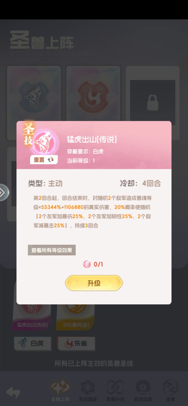 开服第36天,更新下进度。最新阵容如封图,3控制 + 1治疗 + 2输出阵容,已经越战太多了,完全靠脸过关。1、第33天时开通【飞升洞窟】,起步关卡战力要求10亿,完全打不过... 2、飞升后的技能如图2,设定与圣兽差不多,从概率生效变为了一定生效。3、第36天开通了【拼图】,个人觉得机制上有增强的为 精灵公主、蝶晓花韵,其它在数值方面基本没有太大的增强。4、等待第48天开通的【魂石】=