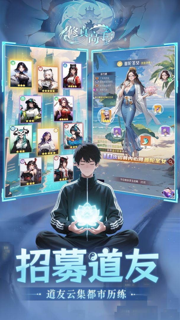《修真高手》这是一款融合赛博朋克与东方玄学的竖屏修真卡牌手游。玩家作为「天选之人」的社畜天选者,一边打工996,一边打坐提升修为。在霓虹都市中见证《山海经》《封神榜》神话复苏:后羿转职滴滴司机用落日神弓疏通堵车长龙,嫦娥签约MCN直播带货广寒宫驻颜丹。玩家白天经营「玫瑰花店」为女魃特调抗雷劫花茶,深夜用符咒编程破解地铁怨灵数据谜团,收集孙悟空、刑天、姜子牙等觉醒古神组成卡牌小队。用愿力值重构现实,打造首个元宇宙仙宗!