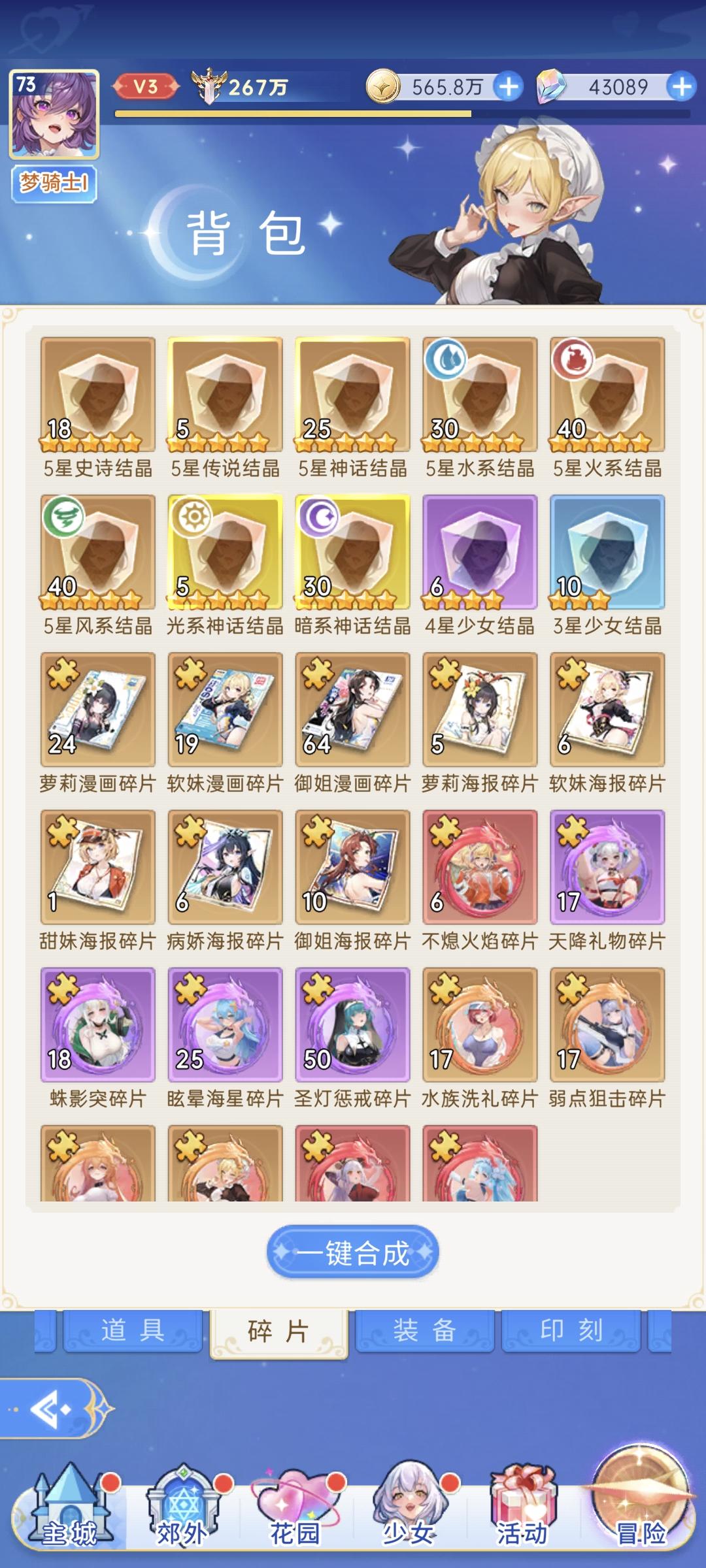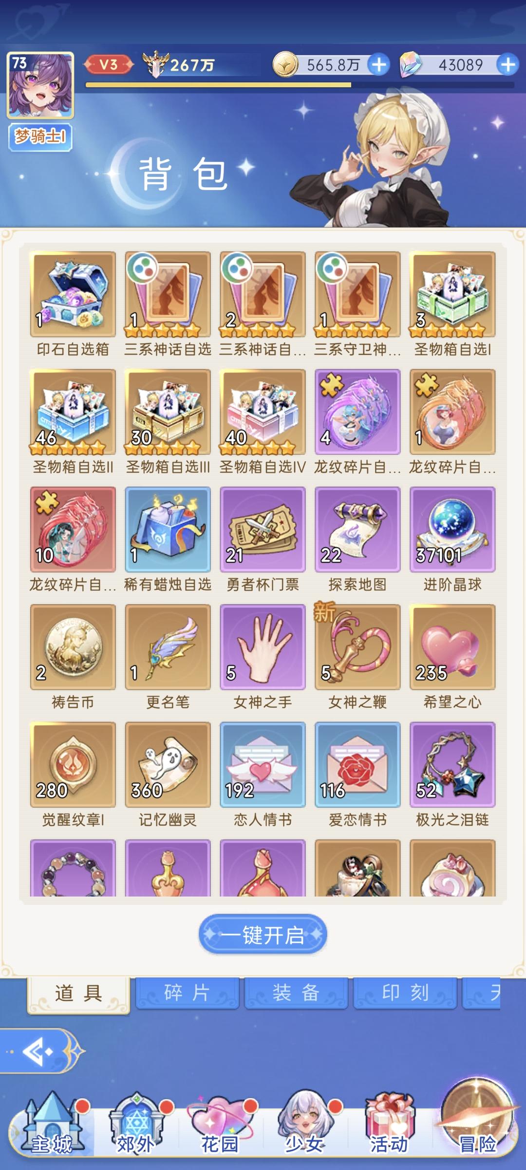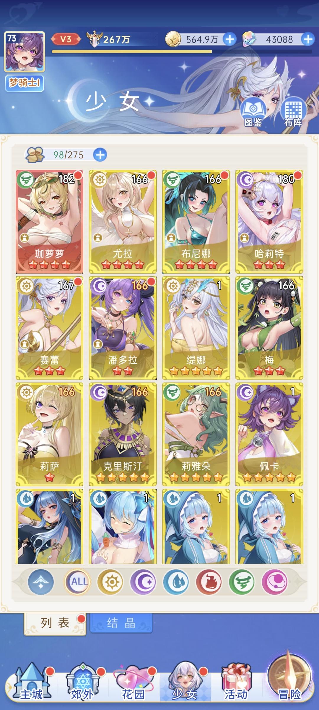 活动结束前,花了8k钻共315抽拿了一个梅本体,凑够了升10星本体,心疼我的钻石💎。本周暗盾待升9星;暗奶预计至少升8星,宿命召唤考虑拿1只升9星。《无尽绝色》里用了下别人的10星主C,确实爽,等我本周10星梅成型