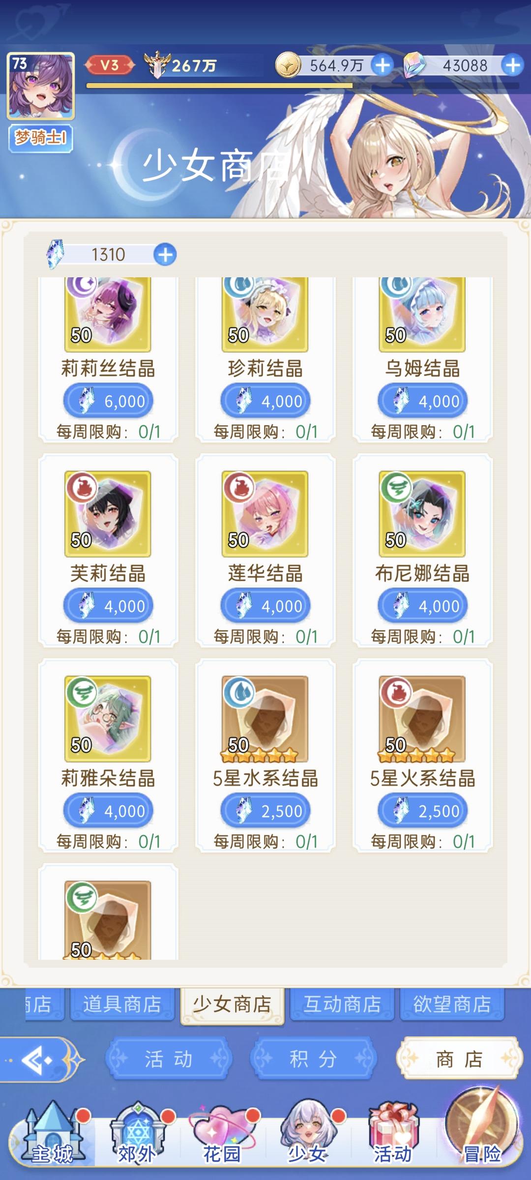 首先强渡,开服几个最多A只能算常驻,新出限定吊打,合理消费。其次,新年新服拿不满新年战令奖励,上架了个礼包两小时更新又下架,随意暗改,毫无诚信,恶心付费用户,本来玩美少女游戏想得点情绪价值,充钱给自己添堵了属于是。我V6停了,省下的冲别的去了。