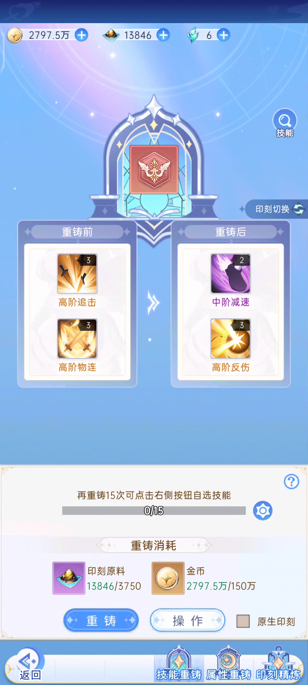 不选技能就精炼不了,两个技能是我30次随机自选出来的,选了技能我30次自选浪费