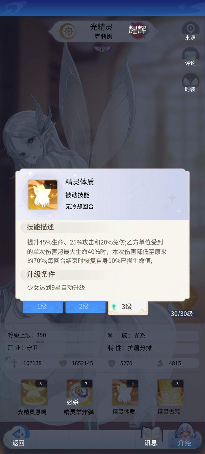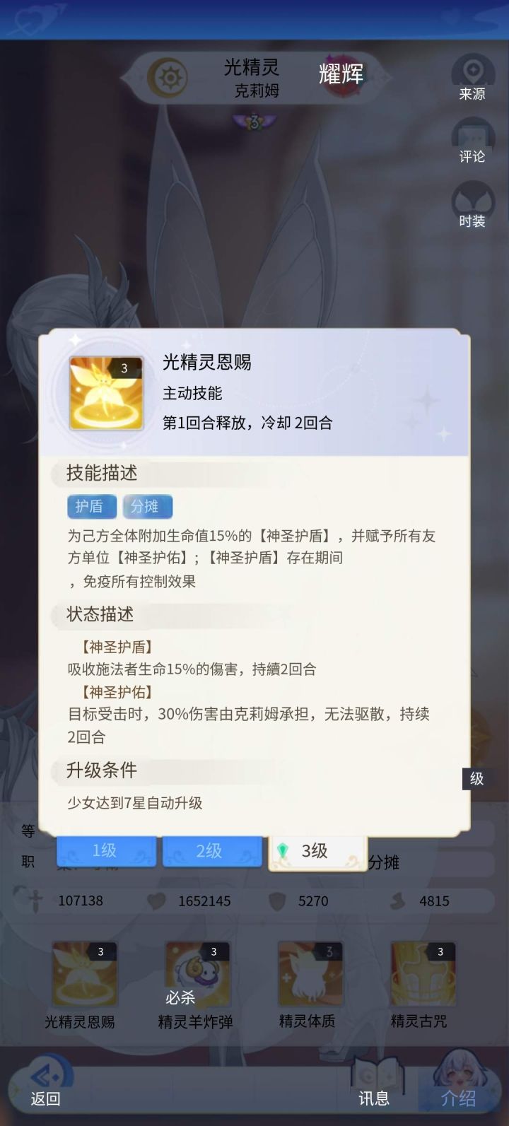光盾技能 不过光系守卫当前排容易被暗输出克制 就像木乃伊被龙娘克制一样有克制伤害加成 最好的还是三系耀辉守卫