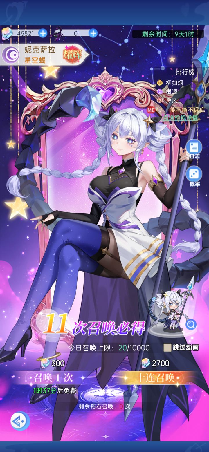 评价一下吧,零氪玩了一个月了,上图7天激活,领取24天,正好三十天一个月了。总结一下女神像抽了一个月,一个光暗没出过。目前为止活动抽奖,抽了一个天使神纹,是220抽吧,保底出的,抽了一个潘多拉保底出的,现在的池子抽了一个火奶,70抽出的也是马上保底了,蝎子又要明天保底了。很黑,抽不出来什么好东西,也没见过20000砖石。玩法也无聊了,每天过了0点上线捣鼓半小时,然后这一天就可以不用再上游戏了,