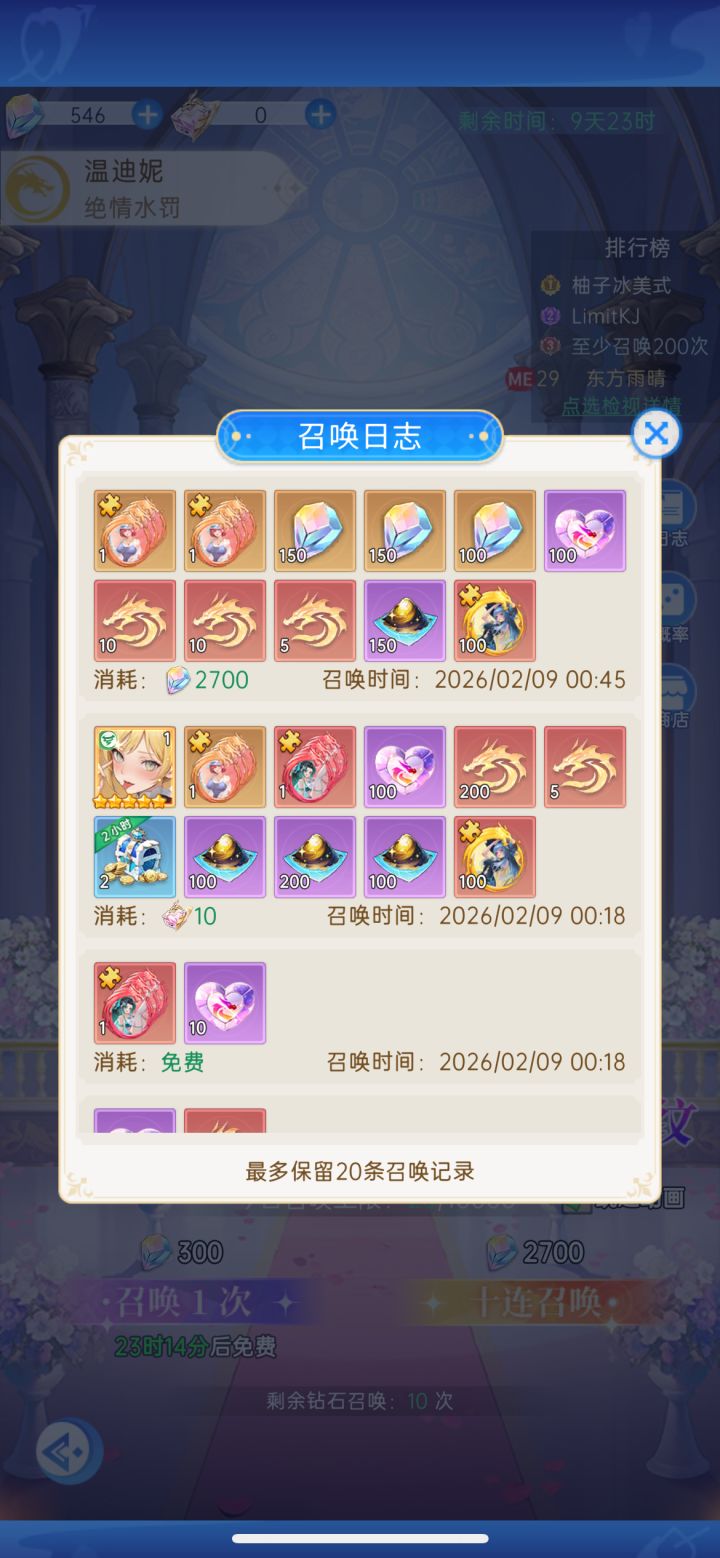 浪费了一万多钻石,现在卡池每天还要支出5400,完全不够用了,后续的活动应该也都参加不了了,可惜了