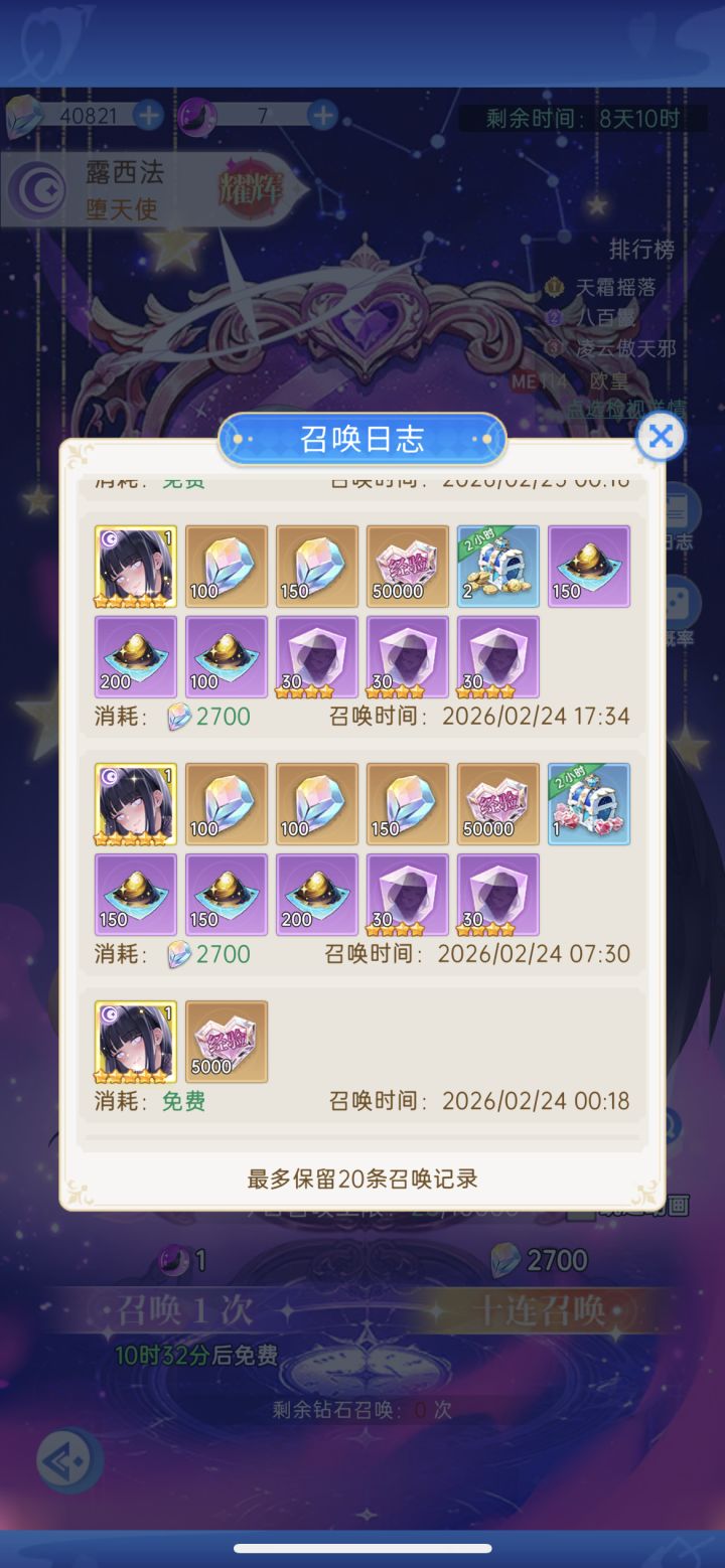 路西法前22抽给了三张 算了下到结束能凑够10星,这个情况云韶还要抽么?还有一天多一点,目前算登陆送的也只有2张。