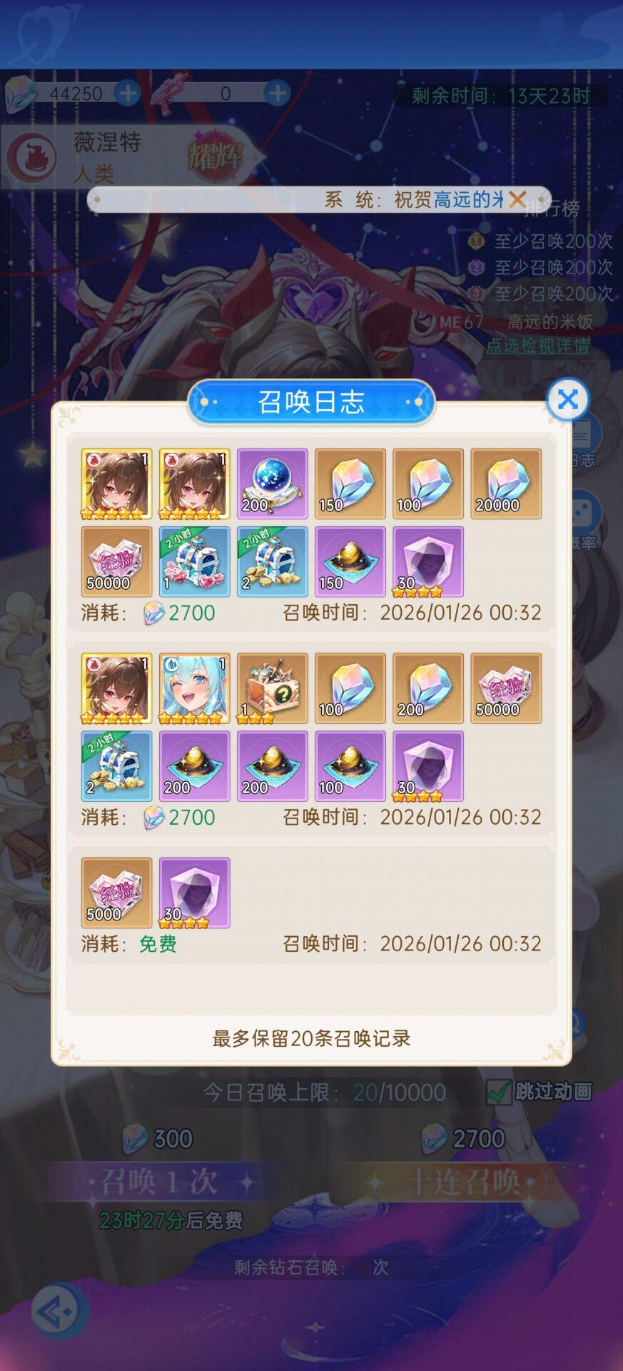 ,然后保底抽到了。太棒了,不过 要十星还差两只,只剩下五天时间了,要是抽不到两只,就只能卡在九星了