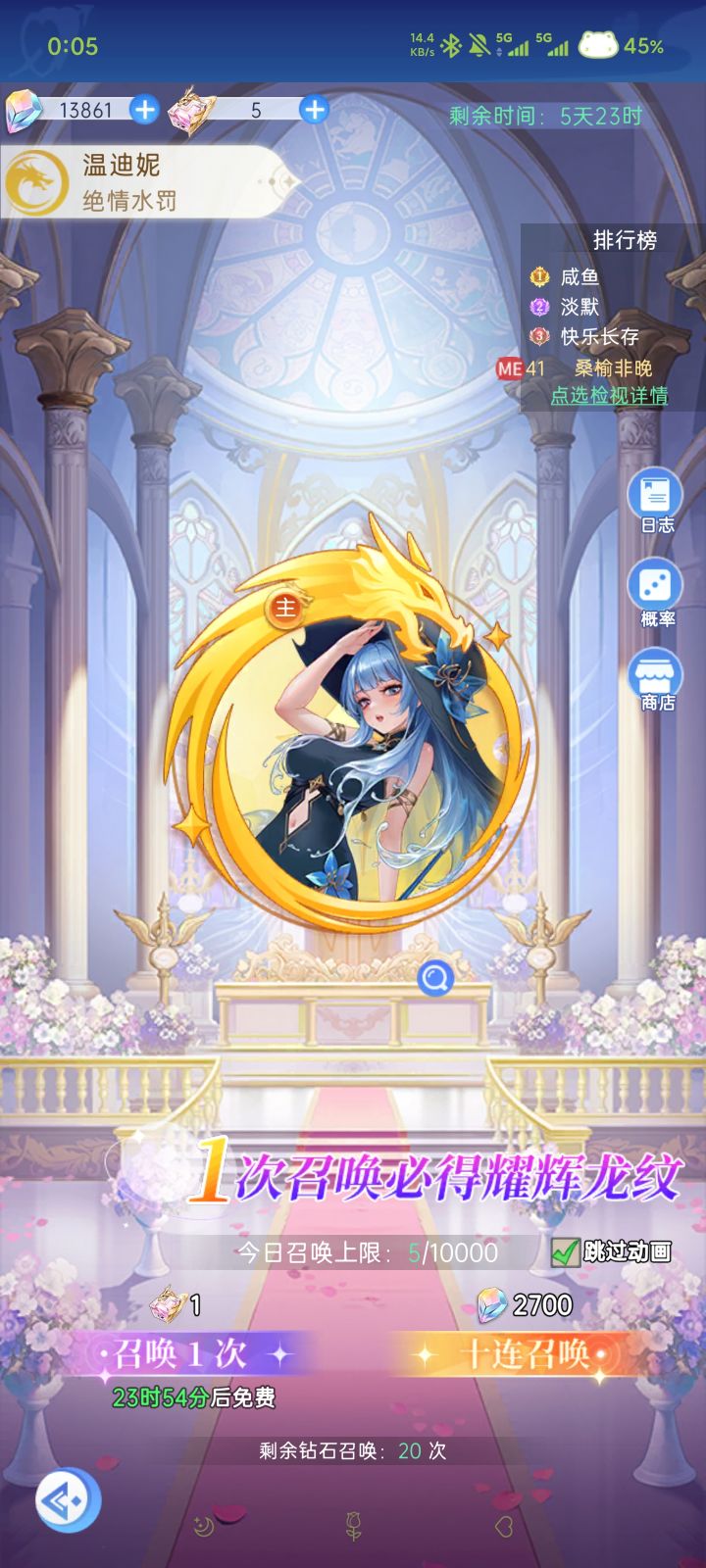 只有3天的活动,何意味?不过第一个10连直接出了,然后那个升星活动免费领的券加上后面两天又能出一只,白嫖10星了
