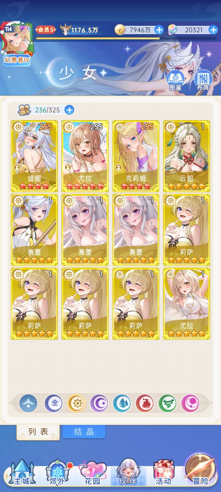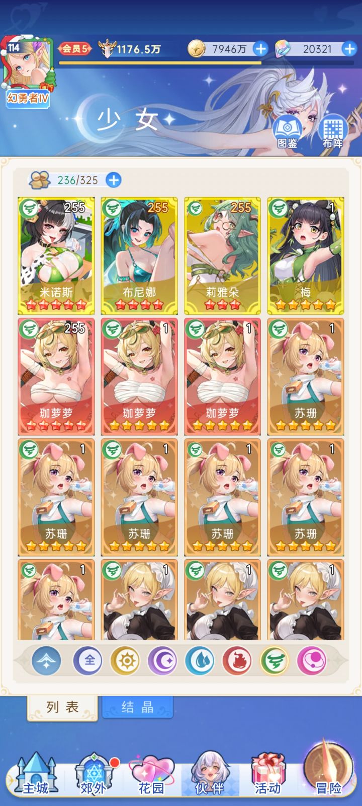 主力阵容主要是光暗盾,章鱼,丽萨还有雪女,活奶。之前准备磕莉莉丝(被吊打过),看论坛说很费,不打算弄了。还有几张光暗卡,是把潘多拉升到10星替换掉雪女 (3个C感觉有点奶量不足,龙纹已经放了蛋糕跟爱的鞭策),还是给猫狗,论坛都说猫狗猛(前面不懂,猫都给弄成升星材料浪费了)。还有,琴女有必要升到10星吗,砖石资源不够了,只能靠氪,还是放弃掉。