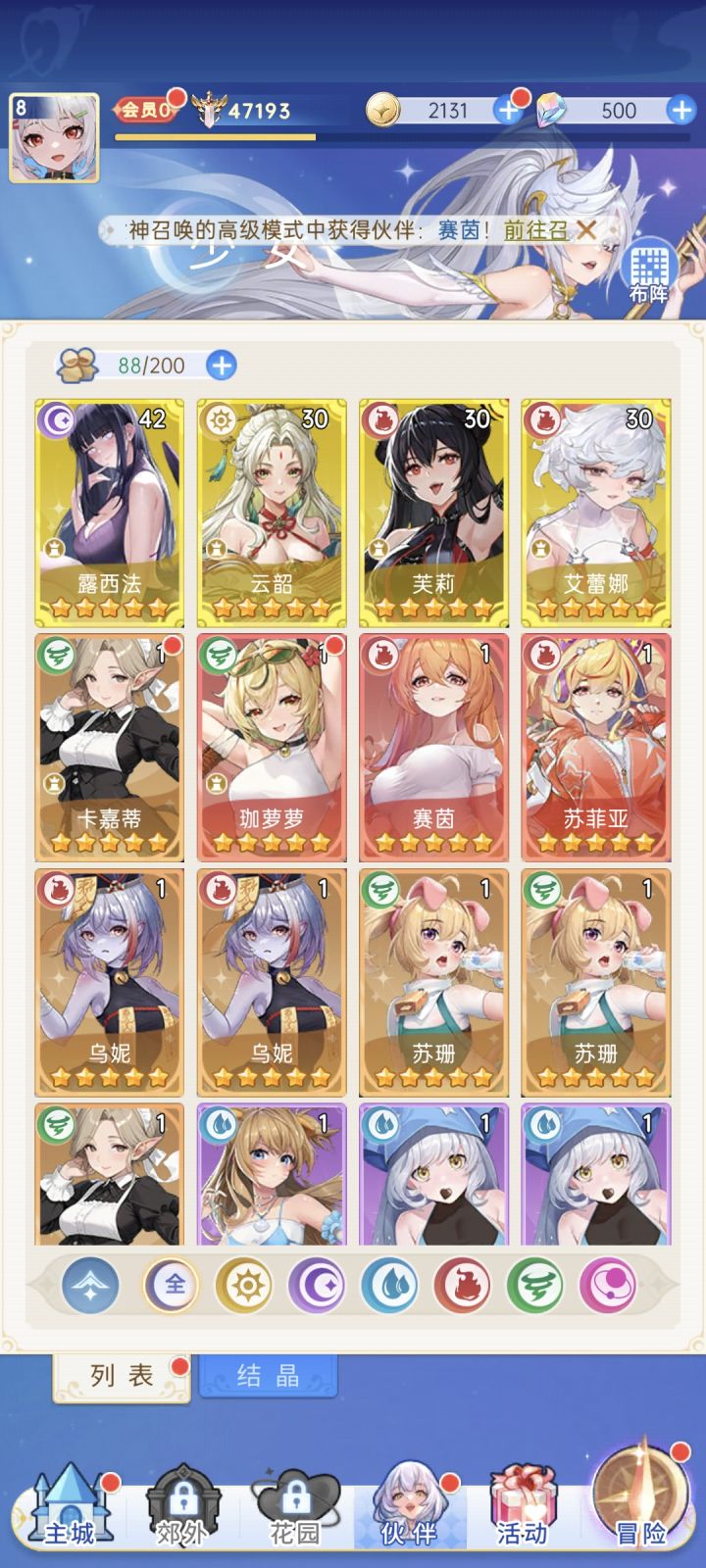 大家好,我是斯密马赛,更一期萌新入坑指南进游戏第一件事:跑区,为什么跑区,非酋和欧皇差距巨大,如果能够第一天抽到当期up,相当于比非洲人多120抽,也能去找找有没有新区双簧的初始号,对于氪佬来说比较划算。【主线篇】1,先去推图升级,第一天升级非常快,有钻石了先把「探索特权」开了,保持每天先推图再用钻石买满冒险,早日升到100级,把玩法全部解锁。2,「伙伴密室」,「倾心之约」,「无限绝色」,