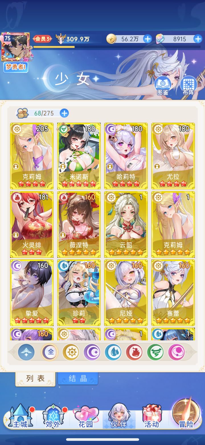 大家好,我是斯密马赛,更一期萌新入坑指南进游戏第一件事:跑区,为什么跑区,非酋和欧皇差距巨大,如果能够第一天抽到当期up,相当于比非洲人多120抽,也能去找找有没有新区双簧的初始号,对于氪佬来说比较划算。【主线篇】1,先去推图升级,第一天升级非常快,有钻石了先把「探索特权」开了,保持每天先推图再用钻石买满冒险,早日升到100级,把玩法全部解锁。2,「伙伴密室」,「倾心之约」,「无限绝色」,