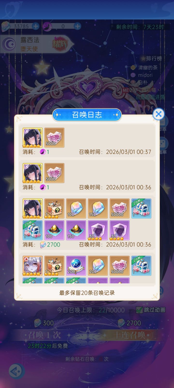 路西法前22抽给了三张 算了下到结束能凑够10星,这个情况云韶还要抽么?还有一天多一点,目前算登陆送的也只有2张。