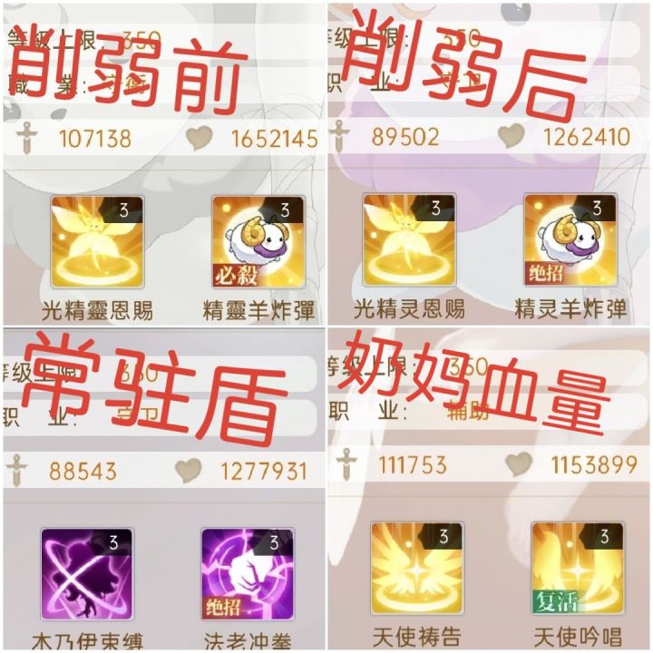 是这样的,一名权贵昨天反馈光盾太强了,三技能生效两次,所以今天就修复了,血量砍45%攻击砍25%,免伤砍20%,所以你们觉得属性降低了,请看图