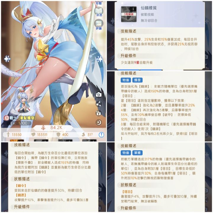 大家好,我是斯密马赛,汇总一下今日更新。首先是新玩法,105级开启副本,每天500钻刷两遍很有必要,差不多5天能弄一件金装,对战力提升还是非常大的。新角色光系霜岚即将上线,技能图放在上面,仅供参考,总结就是丽萨plus版,而且带有辅助效果,适合进光队,可以作为丽萨,云韶,光盾的队友,以上角色全练了的小伙伴非常建议抽取,如果是练了暗队,霜岚就不建议抽了。还有一点大家都有争议的就是光盾被大削,大