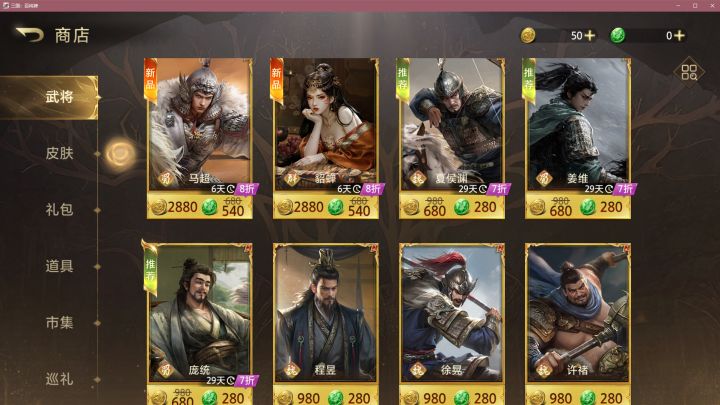 福利慢慢攒都会有的,大多强力武将都可以买。