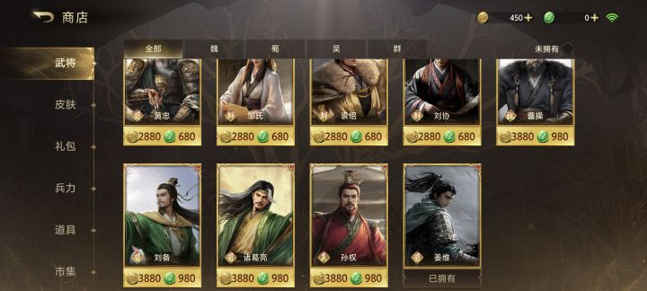 赶紧快跑!!天坑游戏!!除了将星之路升到固定段位给100金饼以外,无任何日常金饼获取!!!除了氪金无法获得金饼!!!给你们看下商店里英雄的价格!纯氪金游戏!!!——————过完主线发现有每日了,每日给20金饼,攒够7个月买一个商城高级英雄也太逆天了