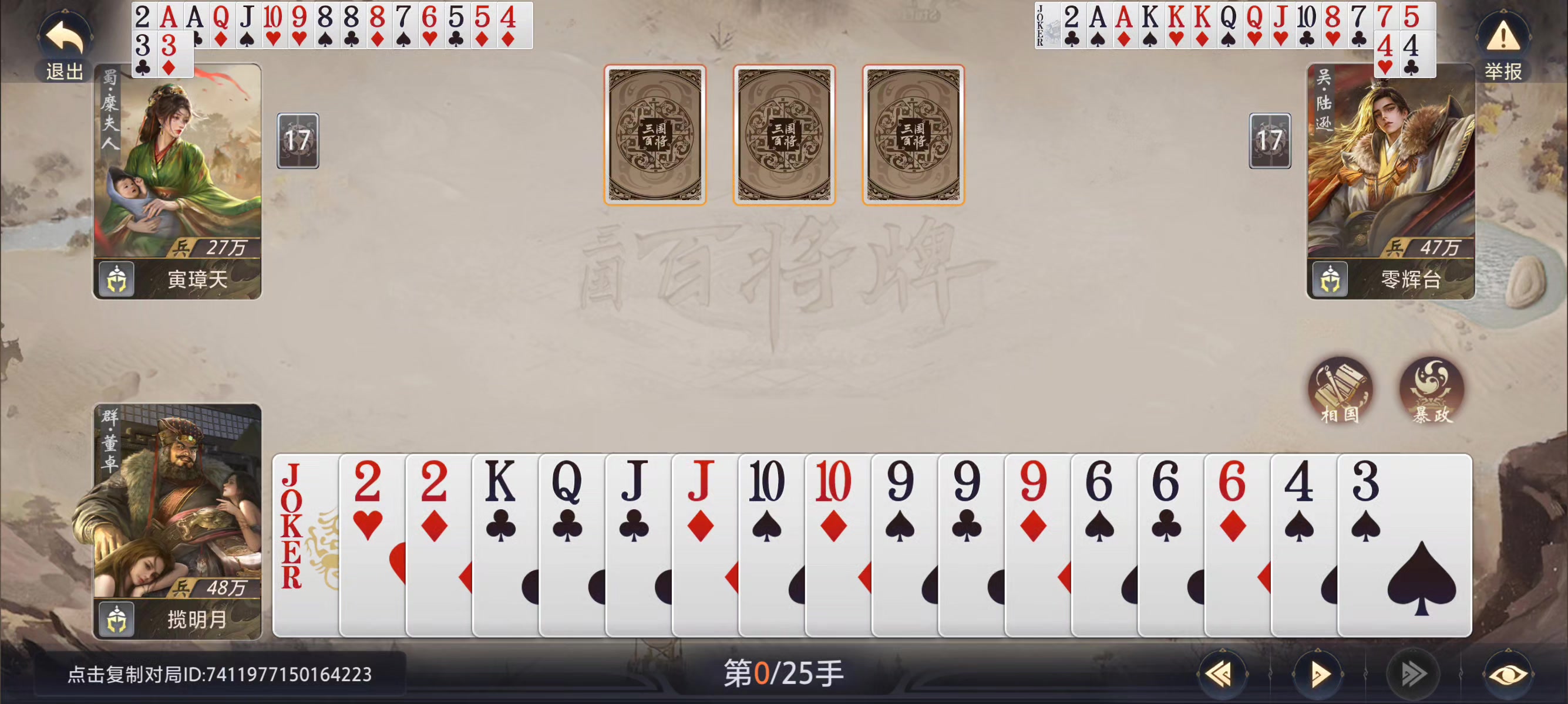 看看我的朋家秀智商是如何低下的: 1.我董卓不出牌时,他不知道走大的,顺过8,智“智商高超”其一…… 2.我出5,他不知道拆地主的牌型,还顶我一手,“智商高超”其二 3.地主是糜夫人,明显是三带一,他硬要打 三带一,“智商高超”其三 4.你特么就算要拼死要打带三带一,是不是也得打三个2去带?!你手上全是大牌,这下留着存银行,以后下去了可以用纸牌当钱花 可怜的孩子,斗啥地主啊,回家喝母乳吧!如此简单