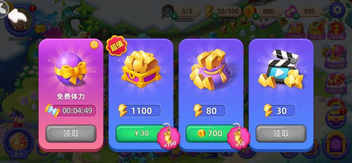 玩了两天的战果,体力稀缺很少,而且获取体力的方法只有金币买,然后一个是看广告,一个需要等五个小时随机抽获得多少体力。获取金币来源,地图上面合成金币,或者合成物品随机给金币。萌龙岛的地图没有玩的很明白#游戏讨论