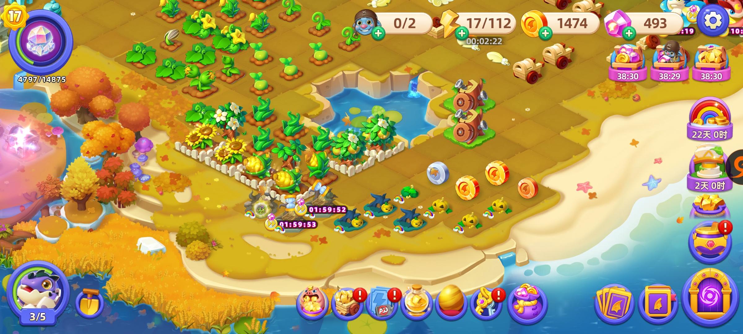 哈喽游戏团队~ 先夸夸你们做的游戏真的超好玩!尤其是双击收集功能,用着特别顺手,省了好多麻烦,必须点赞! 不过玩的时候也遇到几个小问题,想跟你们说说,希望游戏能越来越香~ 1. 全是蛋的那个岛偶尔会回档,真的有点影响心情;2. 房子收益24小时收一次,有时候忙起来根本赶不上,太可惜了;3. 三合一和花金币的时候没弹窗确认,好几次不小心误触,心疼资源;4. 3天活动的蛋给得太多啦,拼尽全力