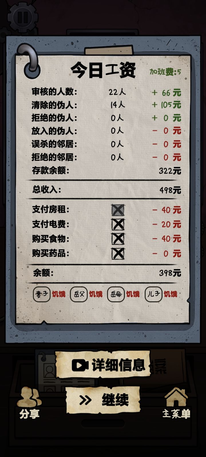 为什么余额快400,家人状态还是饥饿啊?