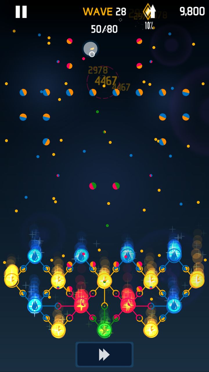 肝了这么久,还是肛不动70关的boos。不过,我还是来分享一下70关之前的经验吧!-----------------分---------------割---------------线----------------首先最重要的就是这个游戏的核心玩法-阵型!不同属性之间的搭配能够产生不同属性加成的攻击。如果你是懒人,那么下面这个一定适合你对就是这样,一排一种属性,简直不要太简单,当然,在凑够