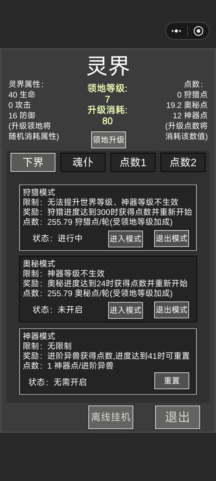 刚发现,神器不用一直重置,打完24奥秘继续挂机会涨经验,可以挂机升级。前期五级可以手动,后续佛系升级挂机升神器就行,反正还没新内容。